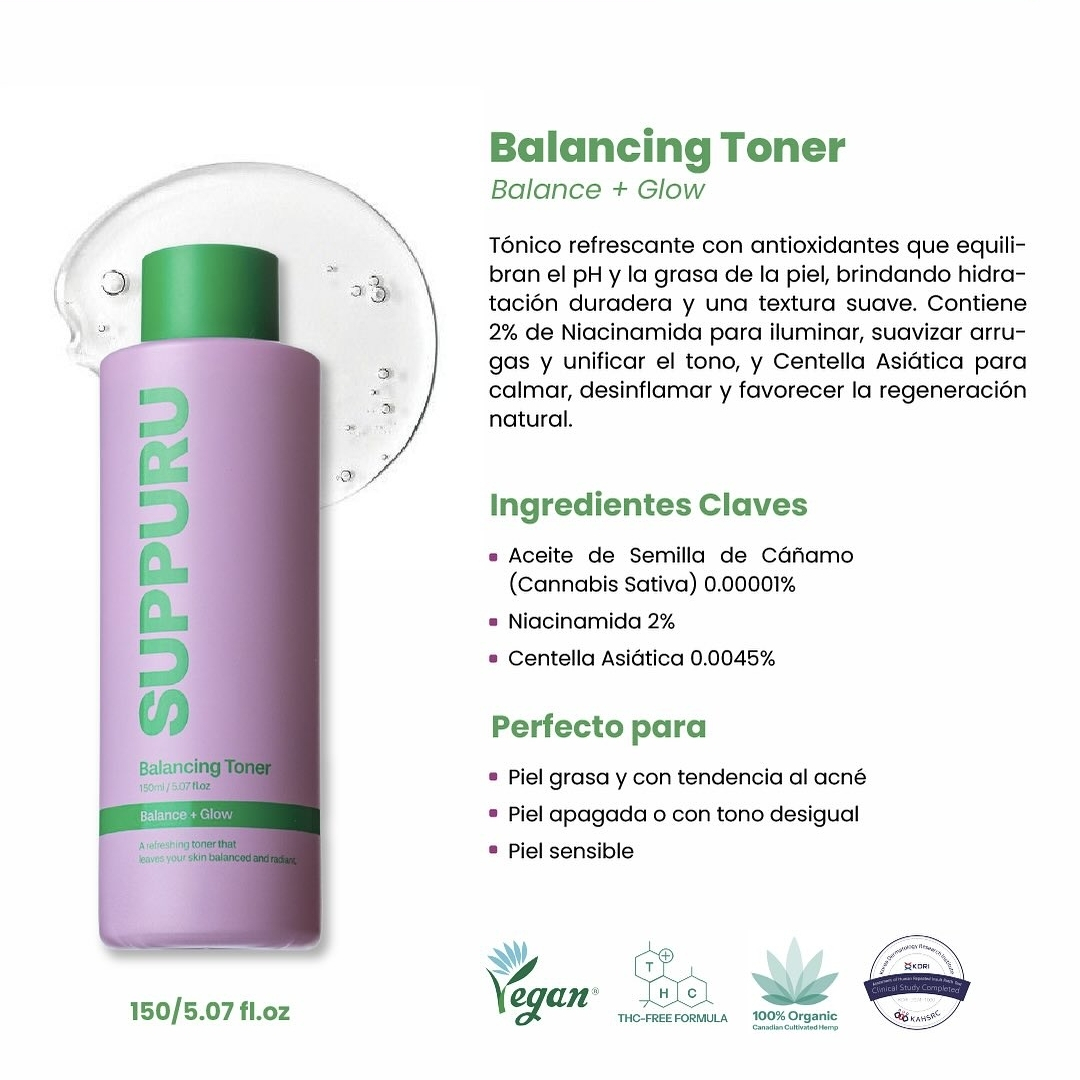 Tónico refrescante con antioxidantes que equilibra el pH y el exceso de grasa, brindando hidratación prolongada y una textura suave. Su fórmula con 2% de Niacinamida y Centella Asiática ilumina, calma e impulsa la regeneración natural de la piel.