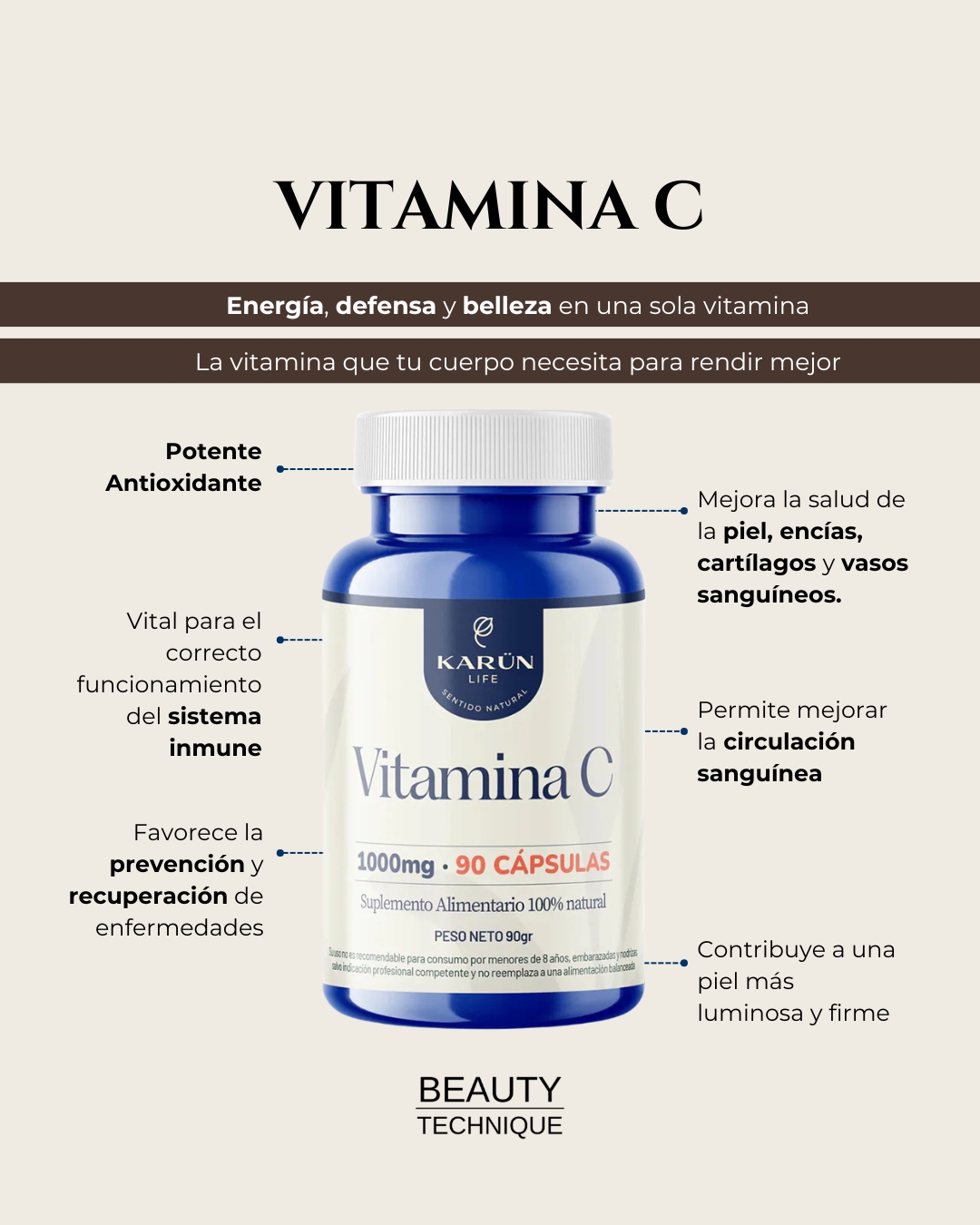 La vitamina C es un antioxidante esencial que apoya el sistema inmunológico, favorece la formación de colágeno y protege al organismo del daño oxidativo. Con 1000 mg por cápsula, obtienes una dosis potente y práctica para mantener tu vitalidad y bienestar.